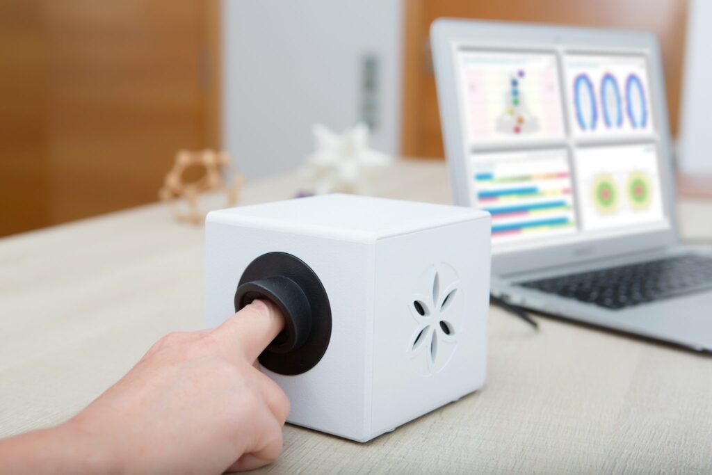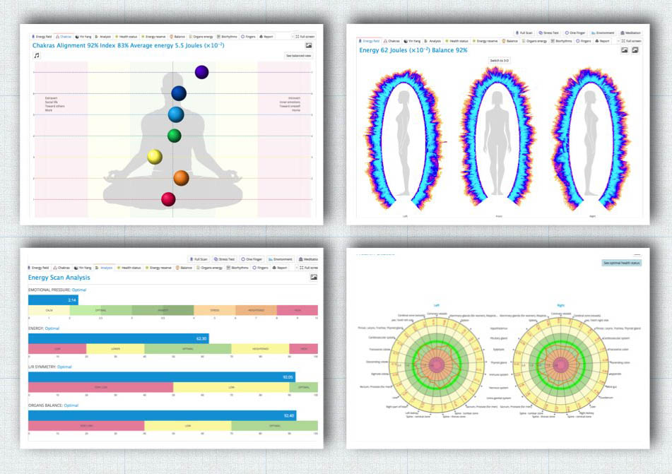 Además, la forma en que efectúa los diagnósticos no es invasiva y muy fácil de realizar. Las mediciones (bioelectografías electrofotónicas) se realizan en las puntas de los dedos de las manos (entendiendo su relación con órganos, sistemas y posiciones del cuerpo, basados en la medicina tradicional china). En pocos minutos se puede ver el campo de energía humano del paciente, teniendo gráficas precisas y sencillas de leer, incluso emitiendo conclusiones dentro de su software y un reporte muy claro sobre el estado de salud del paciente.